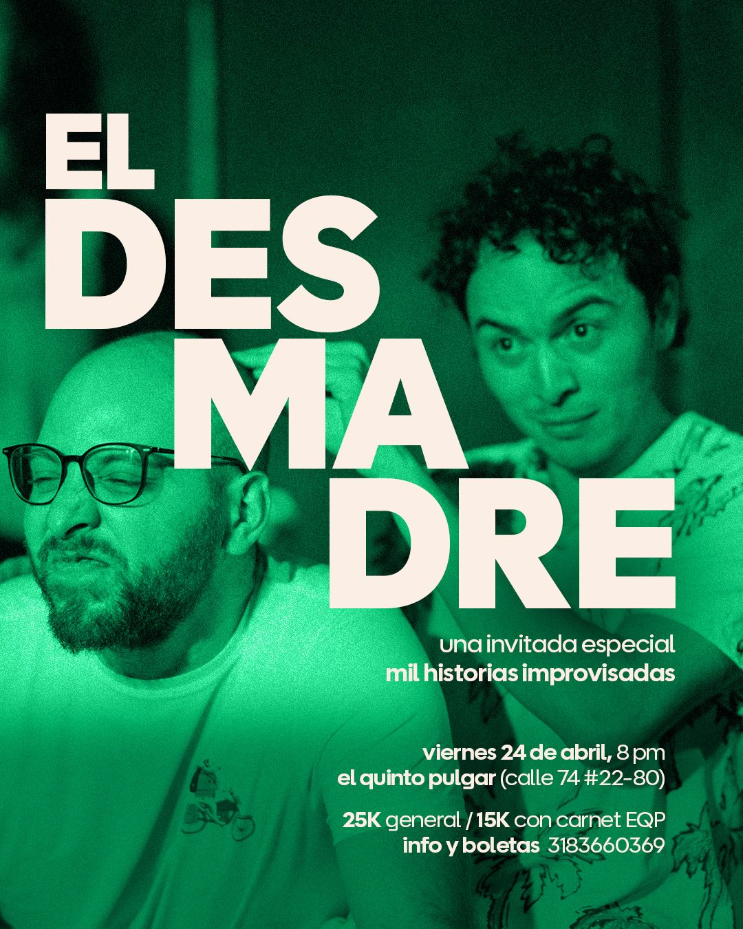 Si quieren ver impro fresca, están de suerte, porque continuamos estrenando equipos en nuestro show residente, El Napolitano. Y este viernes, Desmadre con una invitada mega especial: Mange. Y en simultáneo, dos de nuestros equipos estarán representando a EQP en el Tribu Impro Fest.